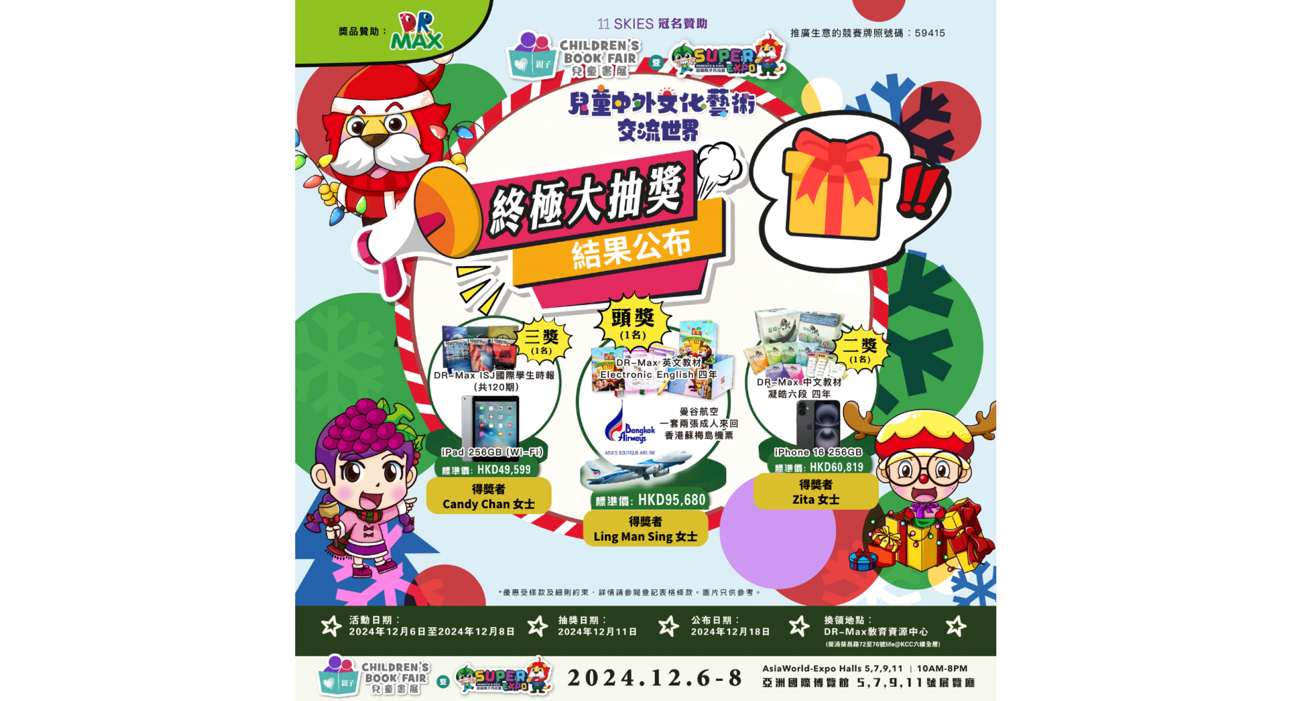 In the upcoming year, we will organize the Children's Book Fair and the Super Parents & Kids Expo at AsiaWorld-Expo in May, October, and December. Each time, we will offer exciting activities and enriching experiences to bring happiness and fulfillment to all attendees.